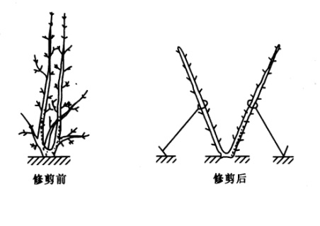 目前采用的丰产树形和树体结构主要有以下几种1.单干形。每株只留一个主干,干高33~70cm左右,在中心主干上按方位分层留3~5个主枝,主枝与中心主干夹角为45°~50°,主枝与中心主干上直接着生结果母枝和结果枝。单干自然圆头形或单主干柱状(适合密植)。2.双干形。每株留两个主干,干高33~70cm,每主干上按方位分层各留3~5个主枝,主枝与主干夹角为45°~50°,2个主干间夹角为90度。3.三干形。每株留3个主干,每个主干上按方位留3~5个主枝,主枝与主干夹角为45°~50°。