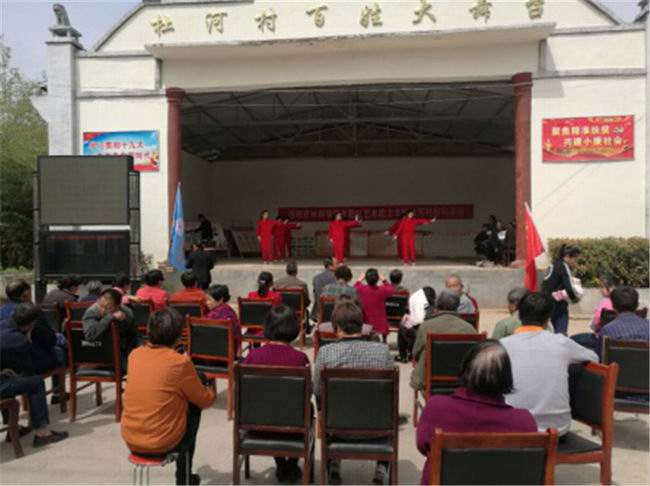 4月30日,春风习习,春意盎然。洛宁县上戈镇杜河村党群中心热闹非凡。洛阳农林科学院老干部夕阳红艺术团正在这里举行文艺表演。
