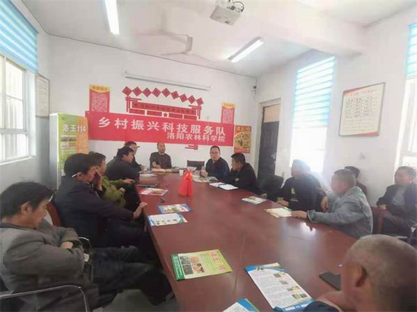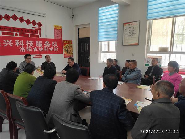 2021年4月28日,应洛宁县东宋镇上宋窑村驻村书记张利锋的邀请,洛阳农林科学院玉米所梁晓伟副研究员、洛阳市科技特派员李小东、高级工张海英和院科技推广处处长韩卫红,一行4人到上宋窑村开展玉米种植技术培训。