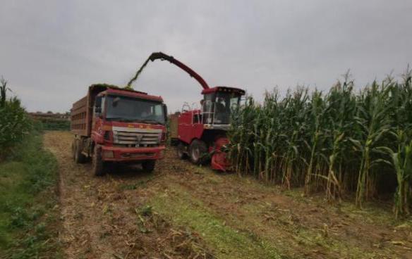 青贮玉米收获要综合考虑天气、玉米成熟度、人力等因素,洛阳地区青贮玉米收割时期通常在9月上旬,选择晴天进行。当玉米籽粒乳线位置达1/2时为最佳收割时期,此时玉米干物质含量在35%左右、淀粉含量达到30%以上。最迟玉米籽粒乳线位置不可晚于2/3,过晚秸秆纤维化程度增加,影响采食量和消化率。
