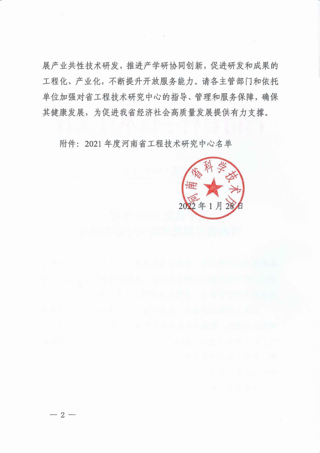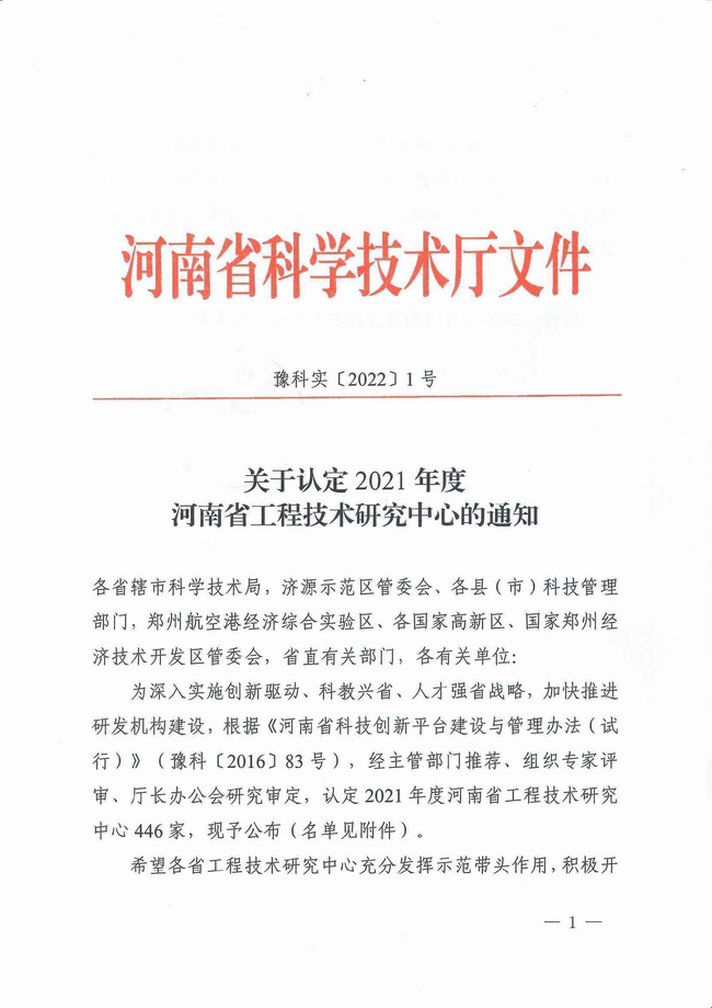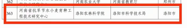 2022年1月28日,河南省科技厅网站公布认定河南省工程技术研究中心名单(豫科实〔2022〕1号)。我院申报的“河南省抗旱节水小麦育种工程技术研究中心”成功入选。该中心的成功组建是我院落实省市党代会精神,大力实施创新驱动、科教兴省、人才强省战略,加快产业技术创新平台建设的具体体现,更是推进我院“454”发展战略目标的有力支撑。