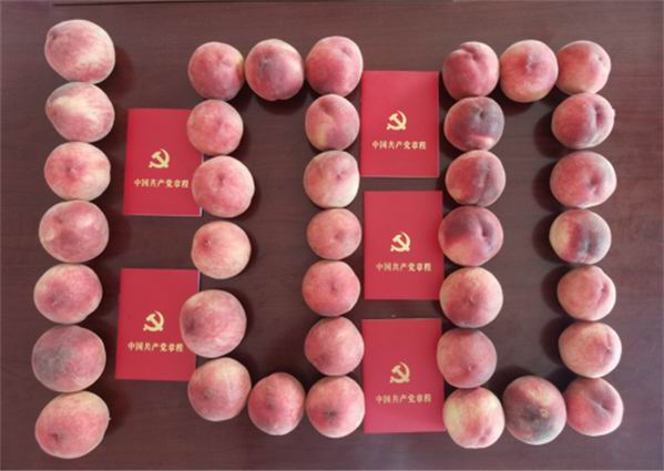 随后,由邓卫国书记领誓,与会党员在村委党旗下庄严宣誓,重温了入党誓词。趁着宣誓后的激情,不顾骄阳直射的热浪,邓卫国书记又带领科技人员,到杜河村苹果园进行现场技术指导,为果农讲解苹果丰产栽培技术、病虫害防治技术、富硒苹果生产技术等。党建活动结束后,院领导带头,全体党员积极参与,通过自费购买村里的鸡蛋、蜂蜜等农产品开展了消费扶贫活动。
