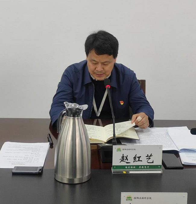 11月19日,洛阳农林科学院召开党组扩大会议,传达学习党的十九届六中全会精神。院党组书记、院长赵红艺同志主持会议并讲话。院党组副书记兼纪委书记邓卫国,院党组成员、副院长黄江涛、蓝育才,副院长赵保献、刘改秀,院党组成员、副院长刘瑞芳同志出席会议,院副科级以上中层干部列席会议。