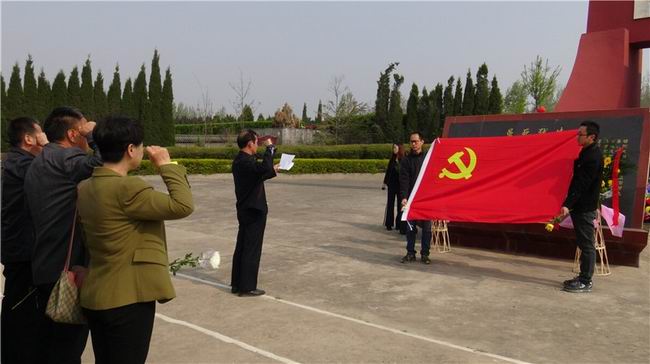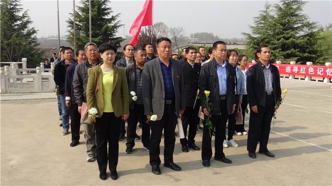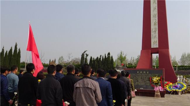 上午9:00,祭扫活动在国歌声中拉开序幕,全体人员默哀3分钟,随后,工作人员介绍了陵园的情况。参加祭奠的50多名党员干部神情肃穆,怀着无比崇敬的心情,向革命烈士 敬献花,默哀中追忆着革命先辈的丰功伟绩。全体党员重温了入党誓词,并共同瞻仰了革命烈士事迹陈列馆。