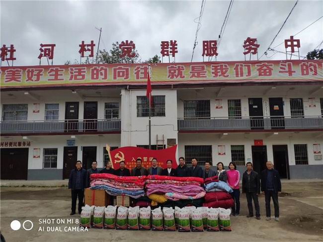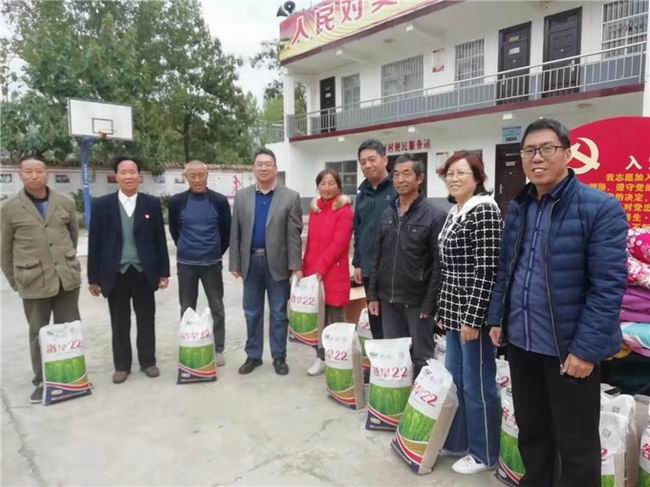 2019年10月24日上午,在洛阳农林科学院副院长蓝育才带领下,组织我院部分党员干部代表,到帮扶村洛宁县上戈镇杜河开展扶贫活动。冬天快来了,天气越来越冷,扶贫队为村里孤寡困难群众送来了棉衣、棉被;同时为村里部分农户免费赠送优质抗旱小麦良种洛旱22。为丰富村里文化活动捐赠大舞台幕布和舞台灯,爱心购买群众苹果 !同时开展洛阳农林科学院一支部和杜河村党支部党建“手拉手”活动,蓝副院长和程秀范老所长为大家上了一次微党课。