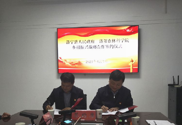 11时30分,在洛宁县政府3楼会议室举行了洛阳农林科学院与洛宁县人民政府乡村振兴战略合作协议签约仪式,院党组书记、院长赵红艺与洛宁县县委副书记、县长周东柯代表双方签署了战略合作协议。周东柯在致辞时表示,洛阳农林科学院与洛宁县长期以来就有着密切的合作关系,帮助洛宁解决“三农”工作中的许多重大科技问题,并且在农业科技创新、服务地方经济等方面发挥着重要作用。下一步,希望能够充分发挥院、县双方合作优势,促进洛宁科技创新、产业发展、农业增效、农民增收,推动洛宁乡村振兴实现更大突破、走在全省前列。赵红艺表示,此前在洛宁工作过,对洛宁有很深厚的感情,洛宁是个农业大县、林果业大县,我院在农林科研方面有较为雄厚的科研实力和技术人才优势,此次合作将全面加强在优质林果、优质草畜、优质粮油、特色牡丹、食用菌等农业产业领域深入开展合作,并表示将我院的新品种、新技术、新成果优先在洛宁县示范推广应用,将在洛宁的示范田建设成洛阳市乃至河南省高标准示范田和示范基地,在新的起点上促进我院科技人员更好的“把成果转化到洛宁希望的田野上,写在洛宁农民群众喜悦的笑脸上”。在推动巩固拓展脱贫攻坚成果和乡村振兴发展道路上发挥重要作用。为洛阳副中心城市建设和沿黄流域农业高质量发展贡献我们的农业科技力量。