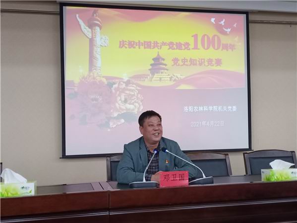 为迎接中国共产党百年华诞,回顾党的光辉历程,营造学党史、知党情、跟党走的浓厚氛围,进一步丰富党史学习教育内容,以实际行动践行初心使命。4月22日下午,洛阳农林科学院举办了“庆祝中国共产党建党100周年”党史知识竞赛,组织全体党员以赛促学,掀起党史学习热潮。