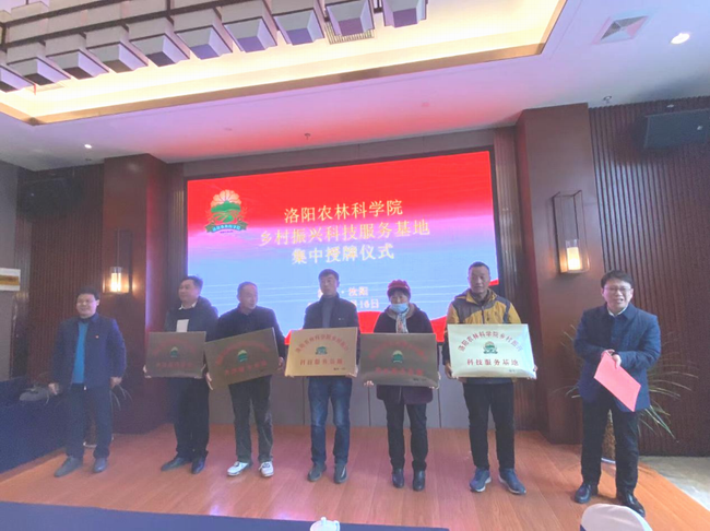 为了更好地贯彻省、市党代会部署及“151”战略,全面推进科技服务提升行动,我院通过建基地、做示范,高效进行成果转化,支持乡村振兴。为了提升基地辨识度、科技人员服务自豪感,提高基地产业发展引领力、科技兴农带动力,宣示我院通过解放思想大讨论活动全力开展科技服务、助力乡村振兴更大决心和信心的目的。12月16日,我院在汝阳县召开“洛阳农林科学院乡村振兴科技服务基地”集中授牌仪式。院党组书记、院长赵红艺,市农业农村局党组成员、市农技中心主任刘军学,汝阳县委副书记马志荣,汝阳县副县长石利强出席会议并讲话。赵保献副院长主持会议。