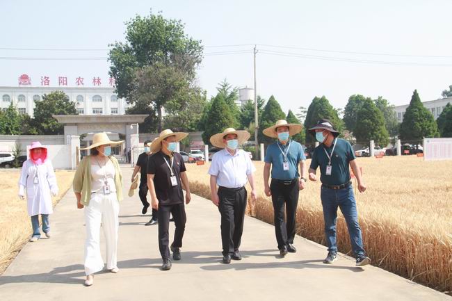 风吹麦浪,丰收在望。韩市长来到我院小麦试验田,实地察看查看小麦收获情况。详细了解我院近年来“洛字号”小麦在新品种培育、产量表现、栽培技术研发、优质专用品种培育等方面的进展,勉励全院要更加扛稳用科技力量保障粮食安全职责使命,争创更大成绩。在牡丹资源圃,韩市长重点了解牡丹种质资源保育状况、牡丹科研开展情况等,要求充分发挥种质资源优势,为我市牡丹产业化发展、持续叫响“洛阳牡丹甲天下”品牌做出新贡献。