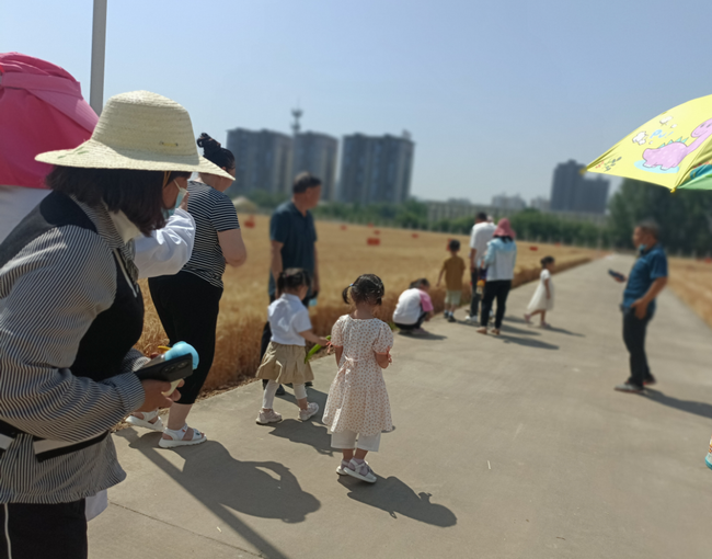 随后孩子们又参观了试验地,在试验地里孩子们如放飞的小鸟,看到了辣椒地、成熟的金色麦田、隆隆的收割机,亲手采摘了辣椒、小西红柿,通过田间体验,孩子们亲身看到了农业生产的不易和父母的辛劳,深切体会到了“粒粒皆辛苦”的内涵。