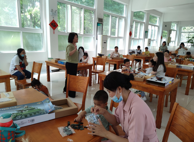 最后,孩子们在职工餐厅进行了手工拼装比赛活动,航天飞机、火箭、小汽车、天安门等拼装玩具一下子吸引了孩子们,孩子每个人也都领到了自己心仪的拼装玩具,和父母一起进行互动拼装,增强了孩子们的动手能力及互帮互学能力。