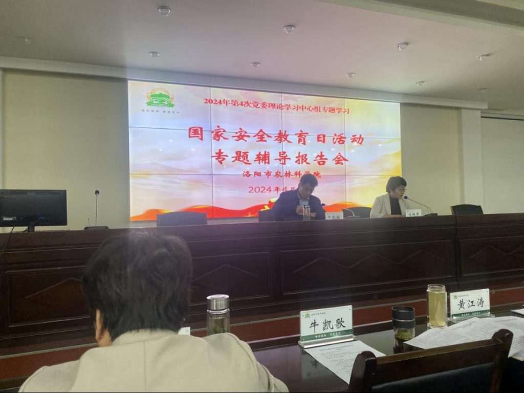 国以安为兴,民以安为乐。今年是习近平总书记提出总体国家安全观10周年,也是我国第9个全民国家安全教育日。为认真贯彻落实总体国家安全观,夯实以新安全格局保障新发展格局的社会基础,全面增强全院干部职工的国家安全意识,4月19日上午,我院组织召开国家安全教育日专题辅导报告会。会议邀请洛阳市委政法委牛凯歌副书记、市委政法委平安创建科赵昱柱科长分别作国家安全和平安创建专题辅导报告。