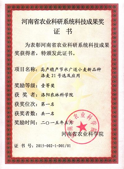 高产稳产节水广适小麦新品种洛麦21号选育及应用