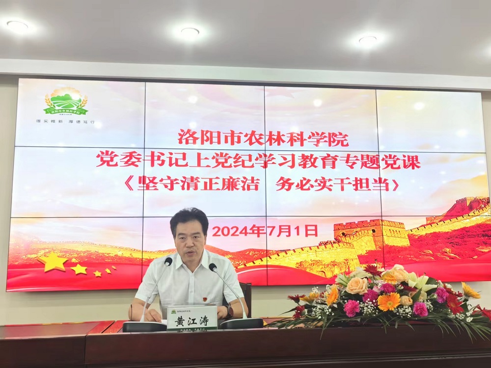 在专题党课上,黄江涛同志强调,我院开展党纪学习教育,就是要进一步强化党员的党性意识,做到学纪、知纪、明纪、守纪,传承伟大建党精神,增强纪律意识和规矩意识,我们要在习近平新时代中国特色社会主义思想的引领下,坚定拥护“两个确立”,坚决做到“两个维护”,向着红旗指引的方向,以实干笃定前行,以奋斗开启未来,用更多的“洛字号”新品种、新技术、新模式,为全市乡村产业发展提供坚实支撑。