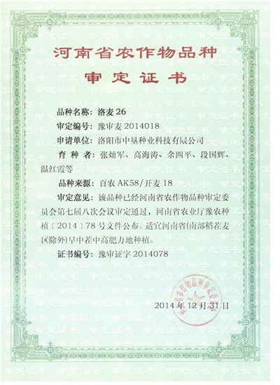 优质中强筋冬小麦新品种洛农512生产经营权 转让公告