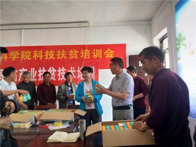 2019年5月23日,国家玉米产业技术体系洛阳试验站站长沈东风、花卉所所长王占营、中药材所所长李彦东等,在洛阳农林科学院副院长梁华带领下,到洛宁杜河贫困村进行产业扶贫技术培训。
