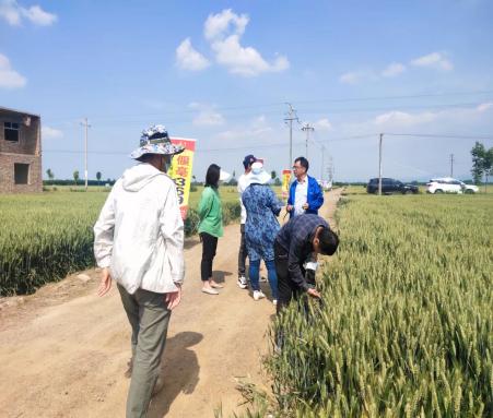 为全面贯彻洛阳市“151”乡村振兴工作部署、“万人助万企”工作要求和我院“454”发展战略,在小麦灌浆期的关键时期,洛阳农林科学院科技服务到田间志愿服务队于2022年5月20日,在杨子光所长带领下前往河南省亳都种业有限公司基地开展技术指导与田间观摩。亳都种业经理韩红伟,洛阳市农业农村局种业科科长许宏涛,洛阳市种子站站长牛季娟,偃师市种子站站长李利红,偃师市大口镇党委副书记张国娟,洛阳电视台等有关人员共同参加。
