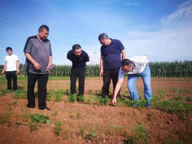 郭永林主任带队首先到酒后镇三王村种植的胡萝卜基地进行了现场考察,基地负责人陈鹏飞对基地种植情况进行了详细汇报。杨爱国所长对种植中存在的问题进行了现场指导,指出当前生产中急需解决的突出问题有三个方面:一是尽快进行间苗定苗工作,力争在5天以内完成此项工作,减少对后期生长的影响;二是注意防治田间害虫危害,主要是蟋蟀和菜青虫危害,建议使用阿维菌素等生物农药进行防治;三是注意水分管理,对于缺水地块及时补水保苗。随后,郭永林主任又对新打机井、配套无塔供水设备和田间滴灌设施进行了实地查看,并对使用情况进行了详细询问。最后酒后镇李岩镇长对酒后镇当前蔬菜产业发展现状,下半年发展规划等情况向郭永林主任进行了汇报。
