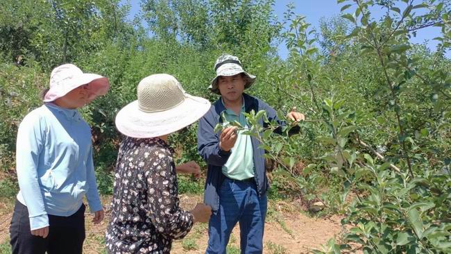 服务队首先来到嵩县闫庄镇胡沟村,这是2022年3月16日服务队到胡沟村进行苹果栽培管理技术培训和果树修剪技术指导,又一次进行的针对性服务。特派员仔细观察了果树的长势及挂果情况,该果树是有7-8年树龄的,正值多结果、结好果的最佳时期,却因修剪管理不到位,水肥供应不足,挂果率低。通过和果农深入沟通,了解了果农的难处,由于人力不足,资金不足,所以管理疏忽,根据此现状,特派员制定了一套简洁管理措施,手把手教果农修剪多余的枝条,保证通风透光。施肥不便的情况下,建议在喷施农药中加入磷酸二氢钾等肥料进行喷施,保证果树所需营养。同时提醒农户夏季修剪注意事项: