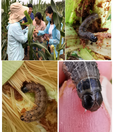 草地贪夜蛾是外来入侵的害虫,2019年1月入侵我国,对我国玉米生产构成严重威胁。2020年9月15日,草地贪夜蛾入选农业农村部《一类农作物病虫害名录》。因此针对草地贪夜蛾的发生危害,田间发现幼虫要及时喷药,发现一块地打一块地,发现一片打一片,严防死守防止草地贪夜蛾的传播扩散。草地贪夜蛾的食量极大,为害更为严重,特别是到高龄期,其具有暴发性,整株玉米的叶片取食光,严重时可造成玉米生长点死亡,影响叶片和果穗的正常发育。其吃光一片地区后会成群迁移到其他农作物区继续危害,严重危害到了作物的生长。草地贪夜蛾一般7月田间可见幼虫。