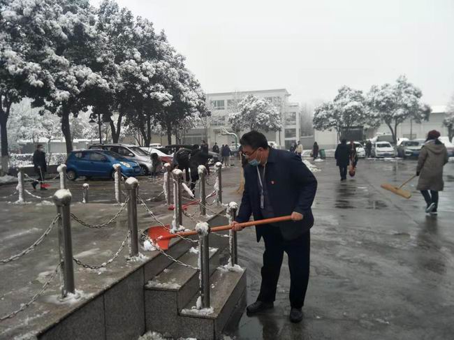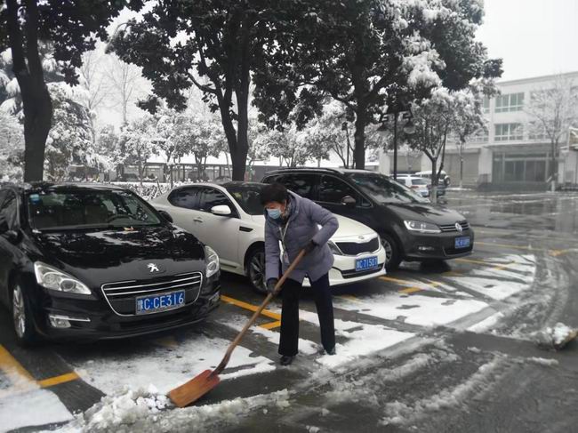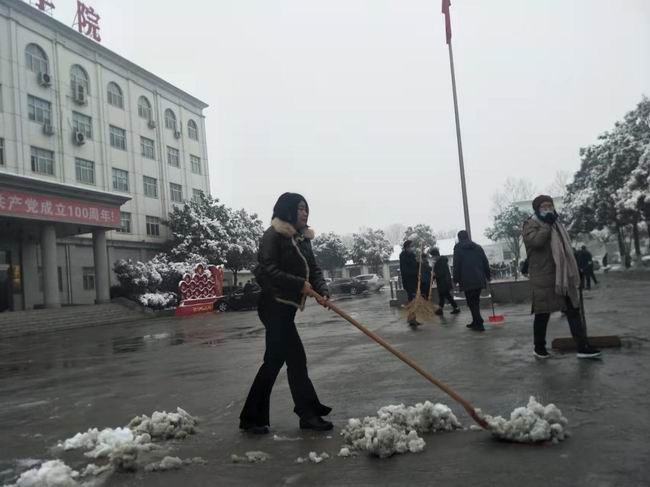 经过一个多小时的辛勤劳作,院区积雪被打扫得干干净净,消除了安全隐患,给全院干部职工上下班带来了方便。(供稿:院文明办 高守彬)