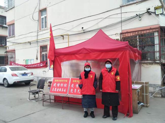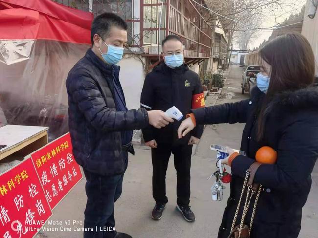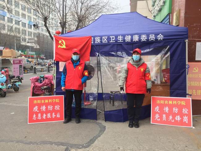 院文明办统一制作了疫情防控党员先锋岗和疫情防控志愿者服务站标志牌。制定了《洛阳农林科学院在职干部职工(志愿者)疫情防控工作应急值班表》,号召志愿者积极参与疫情防控工作,配合办公区以及生活区门岗,在做好自身防护的基础上,认真按照疫情防控要求,佩戴口罩,查看进入人员是否佩戴口罩以及洛康码、行程码并测量体温,外来人员进行登记,发现异常及时向社区报备。